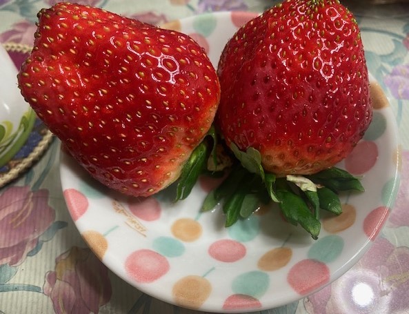 夕食時に私たちもおすそ分けの大きなイチゴと