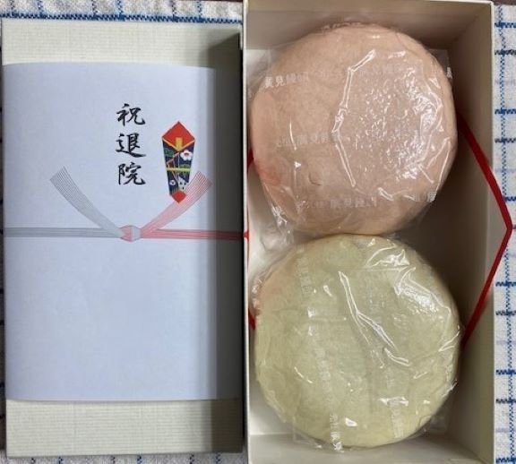 皆さんに退院祝いの紅白まんじゅうをお渡ししたようです。