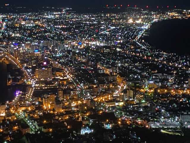 坂道の右へ左へと時々現れる夜景を見ながら登りました。