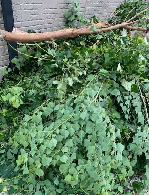 私は茂った枝葉が歩道や車道に落ちてこないように