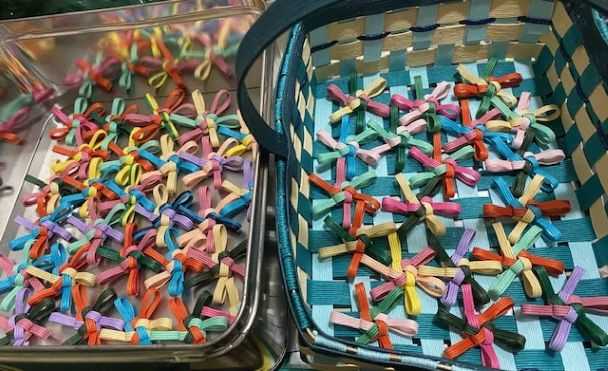 こちらの100個完成した花編みから袋詰めを50個作りました。