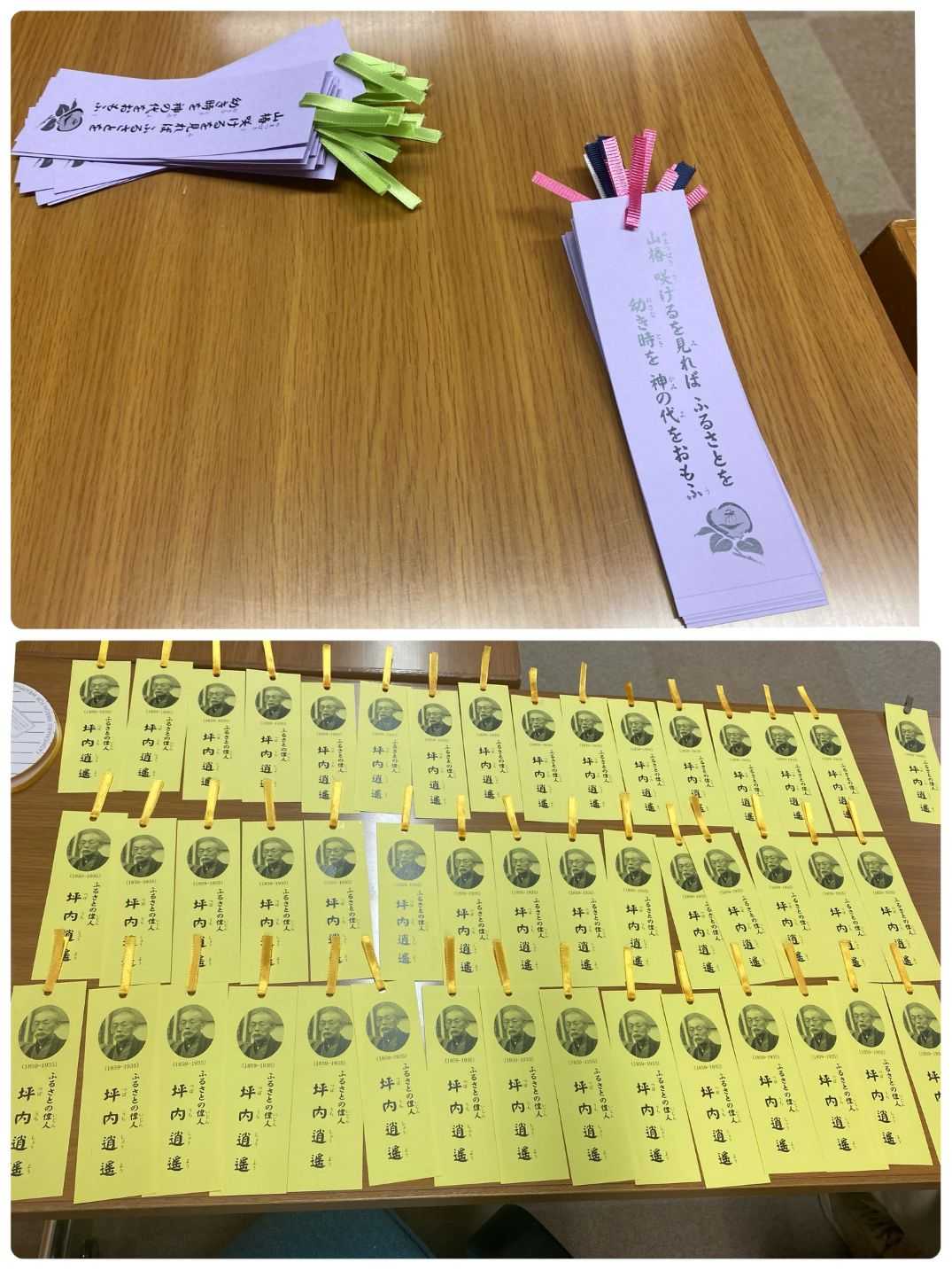 市内の全小学校3年生に配布する栞づくりをしてきました。