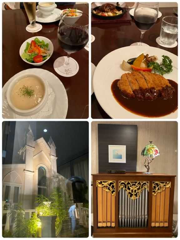 夕食はホテルで赤ワインを頂きながらディナーを頂きました。