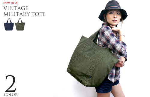 ヴィンテージ ミリタリー トートバンビセレクトアイテム【SHAM ROCK(シャムロック)】デイリーに使えてカッコイイ!!ミリタリー&ヴィンテージ ライクなBIG TOTEが登場!!ヴィンテージ感を醸し出した、ウォッシュ加工や、アタリ感がある味わいのある素材感★ミリタリーテイストなざっくりとシンプルなデザインもGOOD!!ガンガン物を詰め込んでカジュアルに、デイリーに使える大きなサイズ感で、マチが深いから、ボリューム感があるのも良い感じです。バックの口はマグネットで簡単に閉じれる作り、使える内ポケットも付、内側は裏地もちゃんと張ってある丁寧な作りです。ミリタリーなスタイルとヴィンテージな素地感がMIXされたデザイン、ユニセックスに、幅広い人に愛用してもらえそうなバッグになっていますよ。http://item.rakuten.co.jp/bambi/smr-f111218/