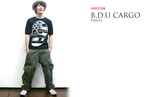 新作!!B.D.U カーゴ パンツバンビセレクトアイテム【HOUSTON】王道 B.D.U CARGOのワイドスタイルがハマル!! Battle Dress Uniform(戦闘服)カーゴ!!M-51ベースのベーシックなカーゴパンツが入荷してきました。ゆったりめの太めなシルエットになっていて、ラフなアメカジスタイルや、ワイドパンツを穿いた感じのスタイリングめっちゃ合います。男っぽい面持ちのカーゴなのが、気に入ってもらえるかなと思ってセレクトしました。コチラでチェックしてね★↓↓↓↓↓http://item.rakuten.co.jp/bambi/ut-1015/