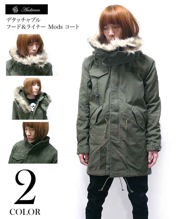 ヒット!! リアル再現とミリタリーの現代アレンジが抜群の存在感と雰囲気!! デタッチャブル フード&ライナー Mod's コート【 Audience 】