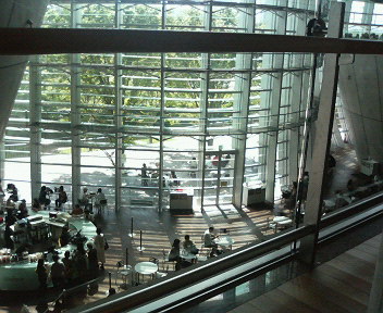お初におめにかかります、新国立美術館。「すみませ~ん。美術館ってどこですか?」ってまさにこの写真をとったところで、警備員さんに聞いてしまい「そこ!」ってそっけない返事が返ってきた。右を見るとそこには巨大建造物が!噂には聞いていたけど、総ガラス張りの超近代的建物です。二科展そろそろいかなきゃ終わっちゃおうよということで、行ってきましたが二科展もさることながら、この国立新美術館もインパクトある。なかに入ってもとっても開放的な空間で、おもわず「では、お茶でもしませう」っと言いたくなる。実際、館内にはおしゃれなカフェがいくつか併設されていて、近隣に住む人はお茶しにくるだけでもいいんじゃないって感じでした。 個人的に「勝手に好きな美術館ベスト2」は、福島の諸橋近代美術館、千葉県は佐倉の川村記念美術館ですが、雰囲気は違えど「おっしゃれ~」って思う。六本木という位置にありながらも、敷地内には緑いっぱいでいい雰囲気かもし出してますよね。で、ハードはさておきソフトの二科展。いつもは絵画しか見ないけど、今回は彫刻とデザインも覗いてみる。普段2次元の作品(絵画とか版画)に見慣れていたので、彫刻はちょっと新鮮です。ディメンションに制限されない世界で犬やら猫やらの彫刻がのびのびしていました。デザインは若い人の作品が多くて、気軽に見れますね。デザイン部はどういう作品の規定なんでしょう?油絵でもデザインに出品してあるものもあるし。CGもの、手書きもの、いろいろ。わかりやすくって、絵の前で「う~ん・・・」って考え込むようなこともなく、デザインってアイデアだなあっと改めて思う。にしても絵をみるととても疲れる・・・。ましたこんなに大量に見るとグッタリ。絵から出てくるエネルギーみたいなのに押されてしまうのか?