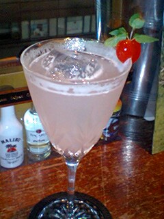 先日、職場の忘年会がありました。その2次会で、上司に誘われてこっそり抜け出しとっても雰囲気のいいBarに連れて行ってもらいました。いつもよく通っていた場所だったのですがこんなところに、こんなお店があったなんて。。上司がマスターに頼んでくれて、私のイメージのカクテルを作ってもらいました。そうして出てきたのが、これです。。ピンク色に可愛いチェリーがついて。。思いっきりピーチでした。こんなブリブリのカクテルが出てきて、思わず「ぷっ…」って噴出しそうになりました。BGMも大人のBarらしく、私の大好きなビリージョエルが流れていて最高にステキな時間でした。
