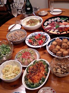 友人の家族と、職場の大先輩で時々集まっているのですが今夜は、大先輩である先生が、この3月で仕事を辞めること。。昨日、友人のご両親の37年目の結婚記念日だったことがあっていつものように友人の実家に集まりました。気心が知れている仲なので、二男と私がいつも行くのですが本当に楽しいひとときです。今夜は、お料理もいっぱいで思わず写メを撮りました。大体、いつも話す内容が社会問題から、生き方とか子どもの問題(仕事柄)でメンバーが、同じものを大切に思っていることがよくわかります。今日は、話が弾んで友人のご両親の趣味である登山の話になったときふとここに彼がいても、きっと楽しく話せて違和感がないだろうなぁ。。って思ってしまいました。このメンバーの関係を、いつまでも大切にしていきたいです。