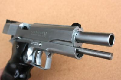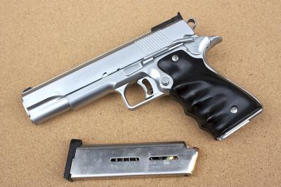 映画のバイオハザード4見たいですね~今週末にでも見に行こうかな~。自分的には3Dでなくても良い気もしますが。さて今回は「MGC ホーグNMカスタム 5インチ シルバー」の続きです。↑ ホールドオープン時はロングリコイルスプリングガイドが飛び出して、これぞガバカスタムって感じ。このスプリングガイドも、通常オプションのものとは異なる太めの物。6インチ版を加工しているようです。↑ リアのボーマーサイトはこの時期のMGCカスタムの定番。後期にはベースを加工したエアガン用の物に取って代わられているので、スクゥエアのものは新鮮です。WAのマグナシリーズカスタムが幾らできが良くっても、モデルガンのリコイルスプリングの強さは再現できません。スライドオープンさせるときの堅さはモデルガンならでは。手動で楽しむんだったらやはりモデルガンでしょう。本来は発火させてナンボかもしれませんが、後の手入れがね。やっぱりタイトー製フルサイズカートのNMカスタムを探してみようかな~。今日はここまで!!!!新しくトイガンサイト始めました→お座敷SHOOTERS.comフェイスブックページ始めました→お座敷シューターのトイガン日記ミリタリーランキング