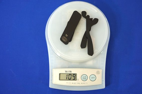 トリガーガード用のウェイトは無いものの、手持ちの秤だと4枚で109gの重量アップが見込めます。