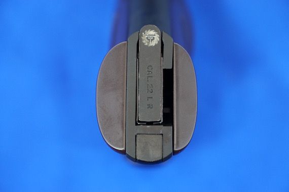 バレルの刻印はソウドオフされた部分で途切れているし、前作にあったランパントコルトマークの円囲いはなくなりました。個人的には実銃のウッズマンをカスタムした雰囲気のある、初代モデルなのは嬉しいですね。