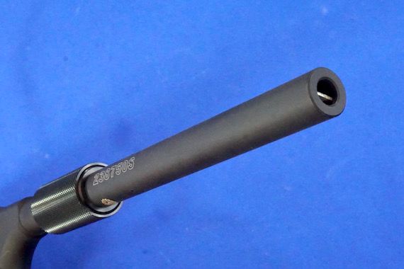 マズル部分にライフリングはありませんが、クラウンの面取加工がなされているのでチープ感はありません。インサートまで入っているのはモデルガンのパーツならではですね。