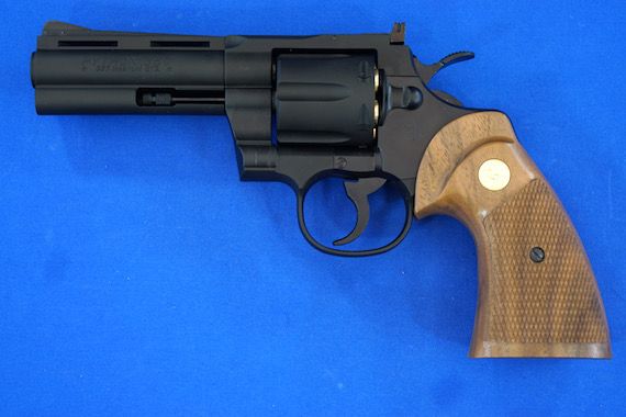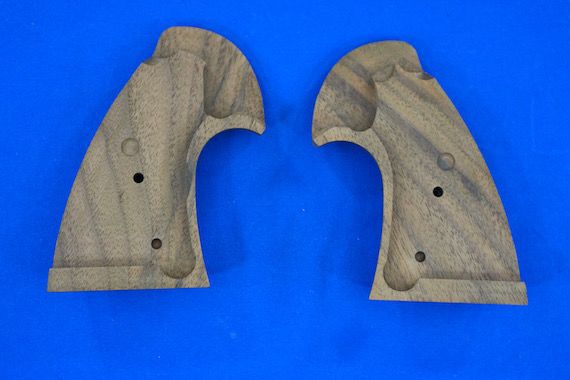 形状は3rdタイプとも後期タイプとも言われる、チェッカリング上部が一直線になった形状のものをモデルアップしています。実銃用パイソンのグリップは、コルト純正のものはだ回っていない上に手が出ない価格なので、木グリを選ぶならこれしかないですね。
