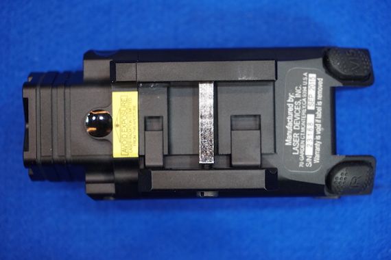 右スイッチを押すと可視ライトの点灯で、続けて押すと消灯。短く2度押すとストロボ発光となります。長押しで可視レーザー点灯で続けて長押しで消灯となります。スイッチを押してライトを点灯させてから長押しするとライトとレーザーの同時点灯も可能です(逆の操作でレーザーからライトの点灯も可能)。