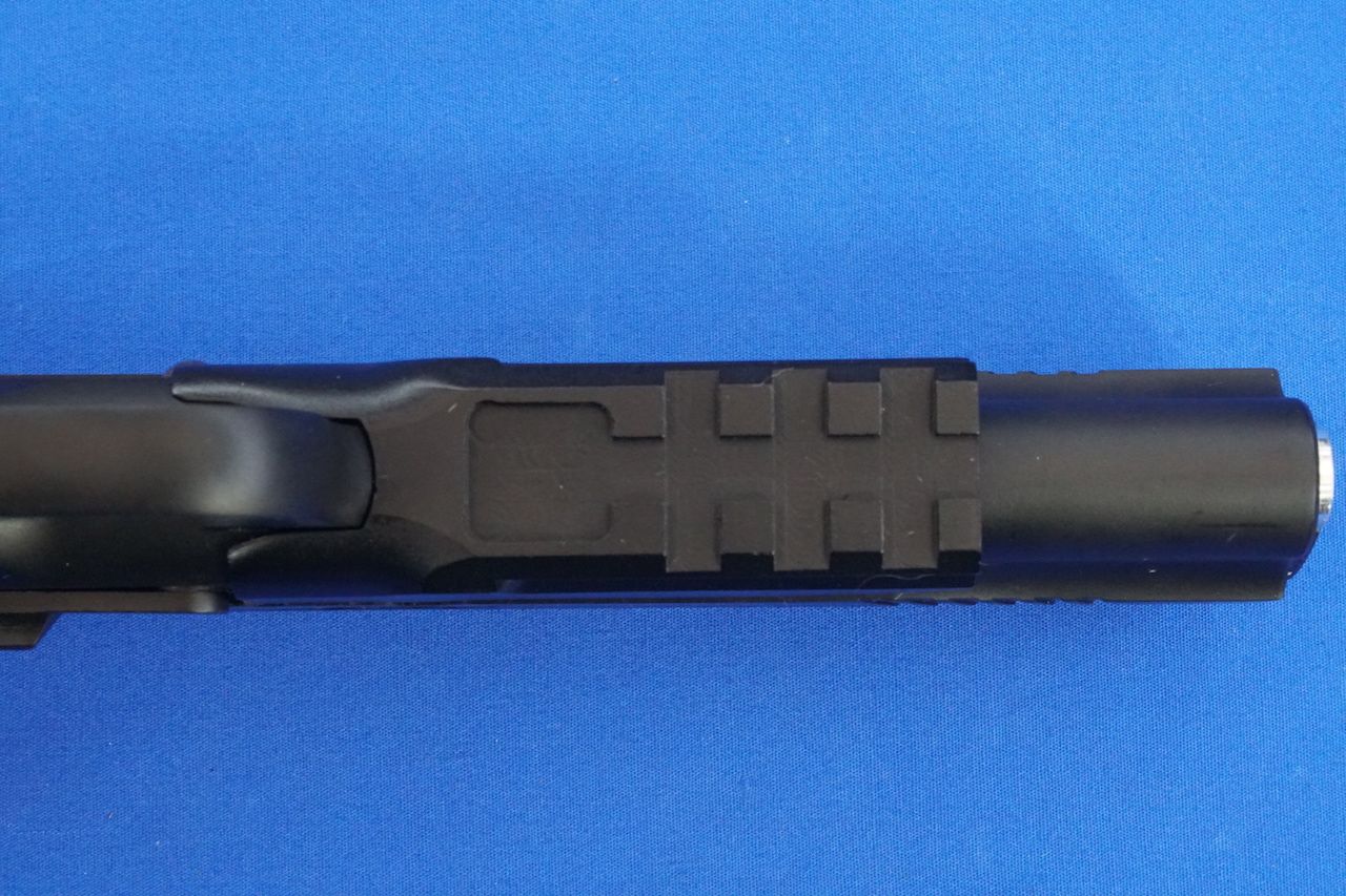 スライド左側の刻印はきちんと「kimber」ロゴになっています。商標問題で騒いでいた当時に発売した「keeper」モデルはロゴまでしっかり違っていたので、金型を作り替えたのかと思ってましたが、もしかしてレーザー刻印?