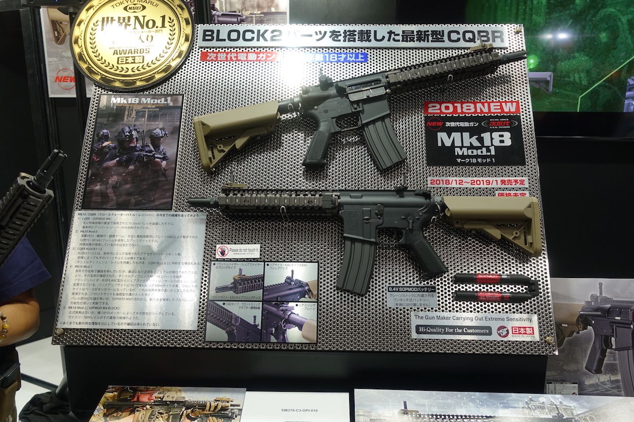 メインステージの展示は、次世代電動ガン「Mk18 Mod.1」。コルト刻印も入っているベーシックな現用M4A1モデルがこの形状ということなんでしょうか。新鮮味は乏しいですが、そつなくまとめられていて,人気は出そうです。