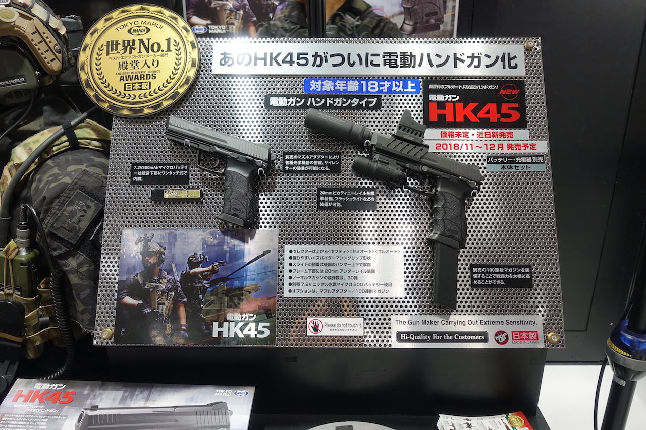 もう一つのメインの新製品が電動ハンドガンの「HK45」。電動ハンドガンにはイマイチ興味が無いんですけど、セミフル切り替えのできるハンドガンサイズの電動ガンとして考えればサバゲとかの需要は高そうですね。