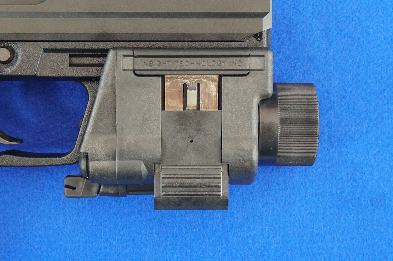 LED化してからかなり明るくなりましたが、カタログ値の350ルーメンあるかどうかは疑問符が付きます。それでも現行ウェポンライトレベルなので、実用上(何の?)問題はありません。部屋の電気を消してライトを付けて撃つだけで楽しめます。