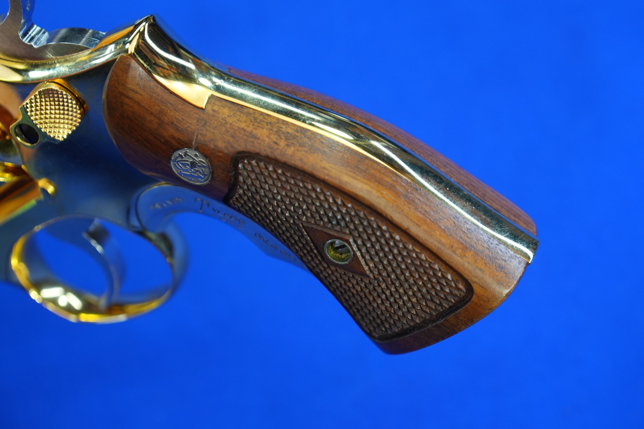 大きなS&Wロゴマークが付いたサイドプレートはグリップ下のスクリューを含めて4本で止められています。古い金属モデルのリボルバーは大抵このタイプをモデルアップしていました。殆どスキマの無いサイドプレートのラインが堪りません。