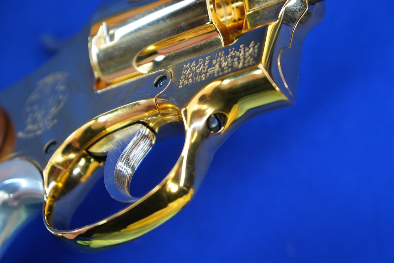 トリガーはハンマーと同じサービスサイズのセレーション入りトリガーになっています。ダミカモデルなのでハンマーSPも軽めにしてあるのは耐久性の面でも好感が持てます。結果、トリがプル自体が軽くなっているのでダブルアクション時のS&Wメカを堪能できる好結果も生み出しています。