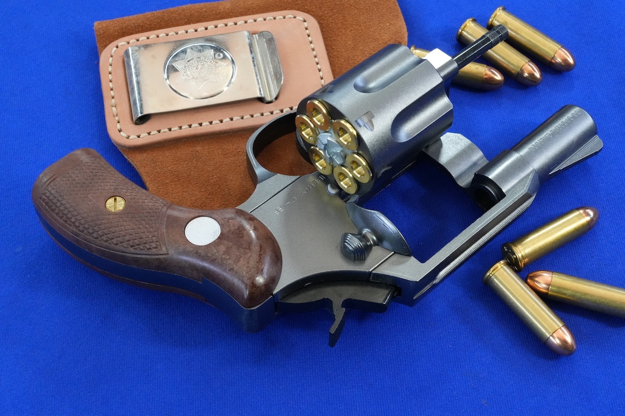 実際に手にしてみると以外と大きくてフレームのゴツさに気がつきます。6連発なのでM36よりも大きいのは想像していましたが、コルトのDフレームよりもボリュームがあります。それに反してグリップが細長いので(当時の日本人に合わせたのか)、全体のバランスが悪くなっています。
