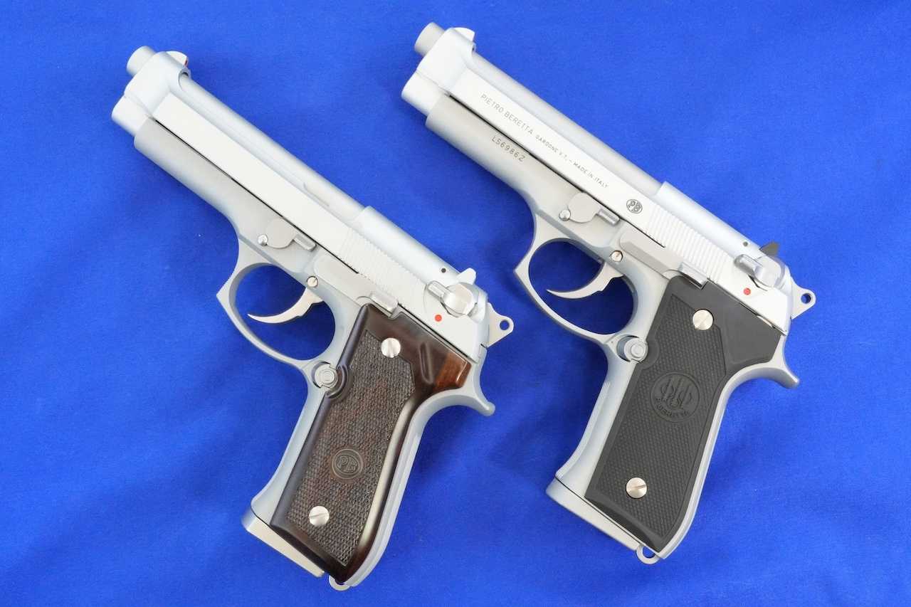 ▲ 左:Vzグリップ付きINOX Evo.2、右:BERETTA純正木グリ付きINOX Evo.HP