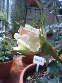 今日は気温が少々低めの曇り空でしたが、 朝8時半から、午後4時半まで ずっとベランダにいました。腰が痛い・・・今日の作業はうどんことの戦いでした。昨日の雨で、更に悪化していました。 しつこいですが我が家で1番に咲いた根室の朝、今日の様子です。倒れそうな程いい香り と聞いて購入しましたが、柑橘系の微香しかしません。もっと開いたら香るのかな? さて、2番手はどのバラが咲きますかね~??? さて、昨日より引き続きブラインドのことで。これはエブリンですが、蕾が確認できた枝は1本だけあとはみんなこんな感じです。わかるかなぁ・・・ とりあえず、今日はそのままにしてあります。 そういえば昨日、職場の後輩であるイケメンMクンのお母さまより、またバラの苗を頂いちゃいました! アンジェラ と 何が咲くかお楽しみ!苗 の2鉢です。マッキー(勝手にそう呼んでいる)ありがとう!!大切に育てますね~