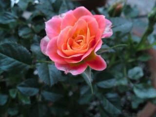 タンジェリーナ2004年 英・ディクソン 作出剣弁高芯咲 ハイブリットティー樹形 半直立性 中香 四季咲き 名前の由来はタンジェリン・オレンジからだそうです。 でも・・・花色はオレンジというより、朱色に近いというか、透明感のない色というか、好みの様で、好みの感じではありません。 花型はとてもきれいで、樹形も上に上にと伸び、バラとしては、とても美しいのですが、 何か物足りない・・・ なのに・・・たくさん咲いたので会社のデスクにも飾りました。綺麗です。 香りはなんとなくします綺麗です。 うどんこで、外側の花弁が傷んでいるものもありますが、それでも次々咲いています。 べーサルシュートも出て、生育良好です。蕾が見えてきたので、先を手で摘み取りました。 こんなに優秀なバラなのになぜ私の心に響かないのでしょうか?バラって不思議です * * * * * * * * * * * * * * * タンジェリーナが大好きな方、ごめんなさいね、あくまでも私の好みかどうかということなので、ご理解ください。