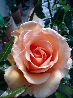 暖かくなると、毎日の水やりが大変ですが、 バラの開花を発見すると、何往復もする、水やりも楽しいものになります。今朝の開花はフレグラントアプリコットでした。 フレグラントというくらいなので、香りを楽しみにしていましたが、あんまり香りません。もう少し開いたら香るかなぁ・・・?先日見た、実家のフリュイテは素晴らしい香りでした。あぁ、バラの香りを嗅ぎたい・・・私、においフェチですか? もうひとつの楽しみは芍薬です。 昨日と今朝の様子ですが、残業して帰ってみれば、昼間のうちに咲き進んだようです。こんなに!明日はどんな姿になるのかなぁ・・・咲いたのは5個あるうちのこれひとつだけです。葉は出るのですが、花がなかなか咲きません。 芍薬って難しいですか?育て方間違っているのかなぁ?