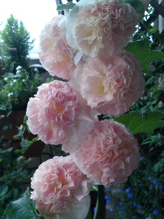 どこにいても、とにかく花を見れば携帯カメラで撮影をする私・・・少したまってきたので、ここで一気に載せちゃいます。*まずは今朝のベランダから・・・アブラハムダービーとエブリン仲良く同じ時に咲いてくれました。 *施設からくちなしツユクサ ユリ と アジサイ今、ユリにも興味津々なんです手を出してしまいそうです*実家の庭から カラー と フクシア?デンドロビューム? もう名前がわかりませ~ん*最後に今日のタチアオイの様子 ホントにキレ~イ!!ふわふわ~バラや芍薬よりも長く楽しめそうです。
