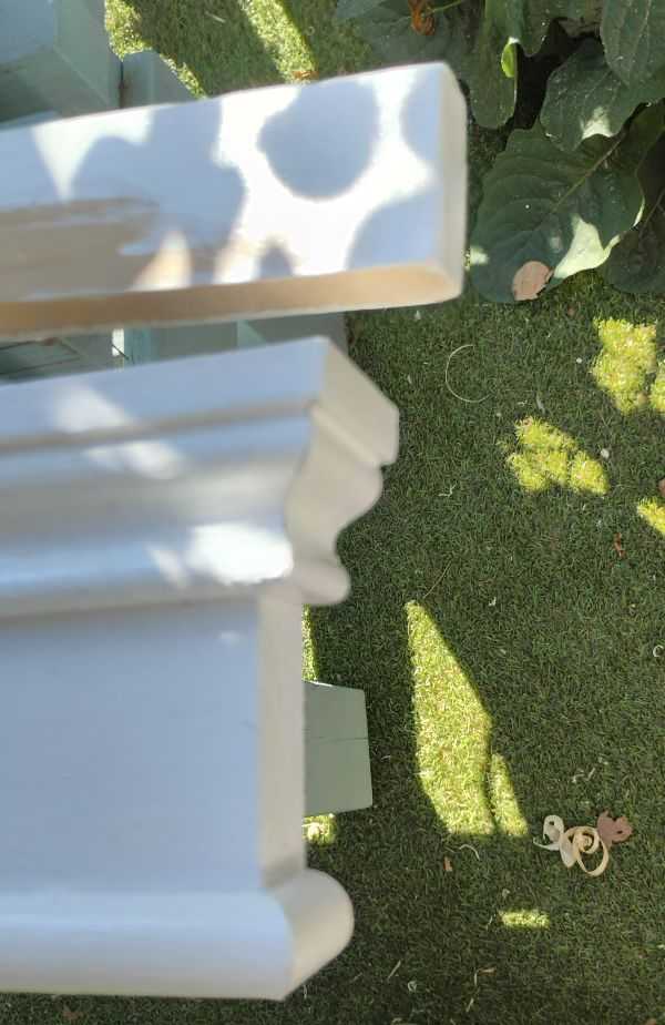 ご覧いただきありがとうございます。反対側の窓まわりにもモールディングをつける。板材、木製モールディングをカット、研磨、塗装。カクシ釘で止めました。カクシ釘は時々失敗します。曲がって最後まで入らない時は、出ているクギの根元をニッパーで切り取って新しく打ち直します。多少跡が残る場合もありますが、塗料やパテで隠れてしまうので大丈夫です。使用したペンキはこちらお読みいただきありがとうございました。