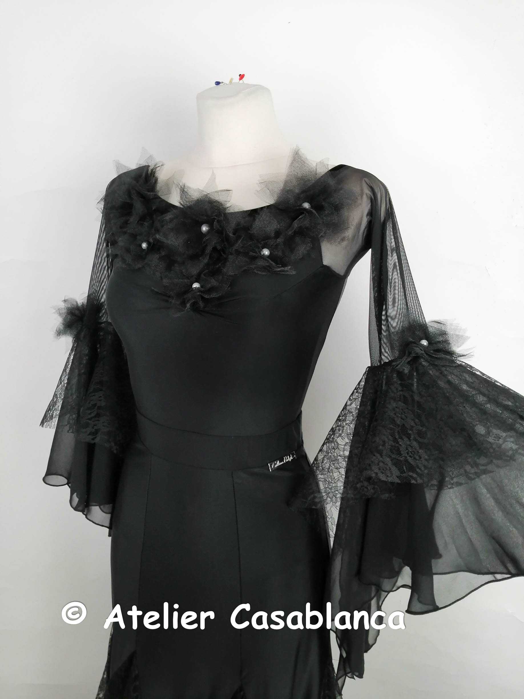 管理人超おすすめ!!管理人自身も多くのウェアを愛用しているウクライナの超素晴らしいラグジュアリーダンスドレスブランド、「スヴェトラーナ・パブリッシュ」制作の、レースと立体的なお花のオーナメントが大変美しい、一点物のレオタードとスカートのセットアップです。未使用の新品。