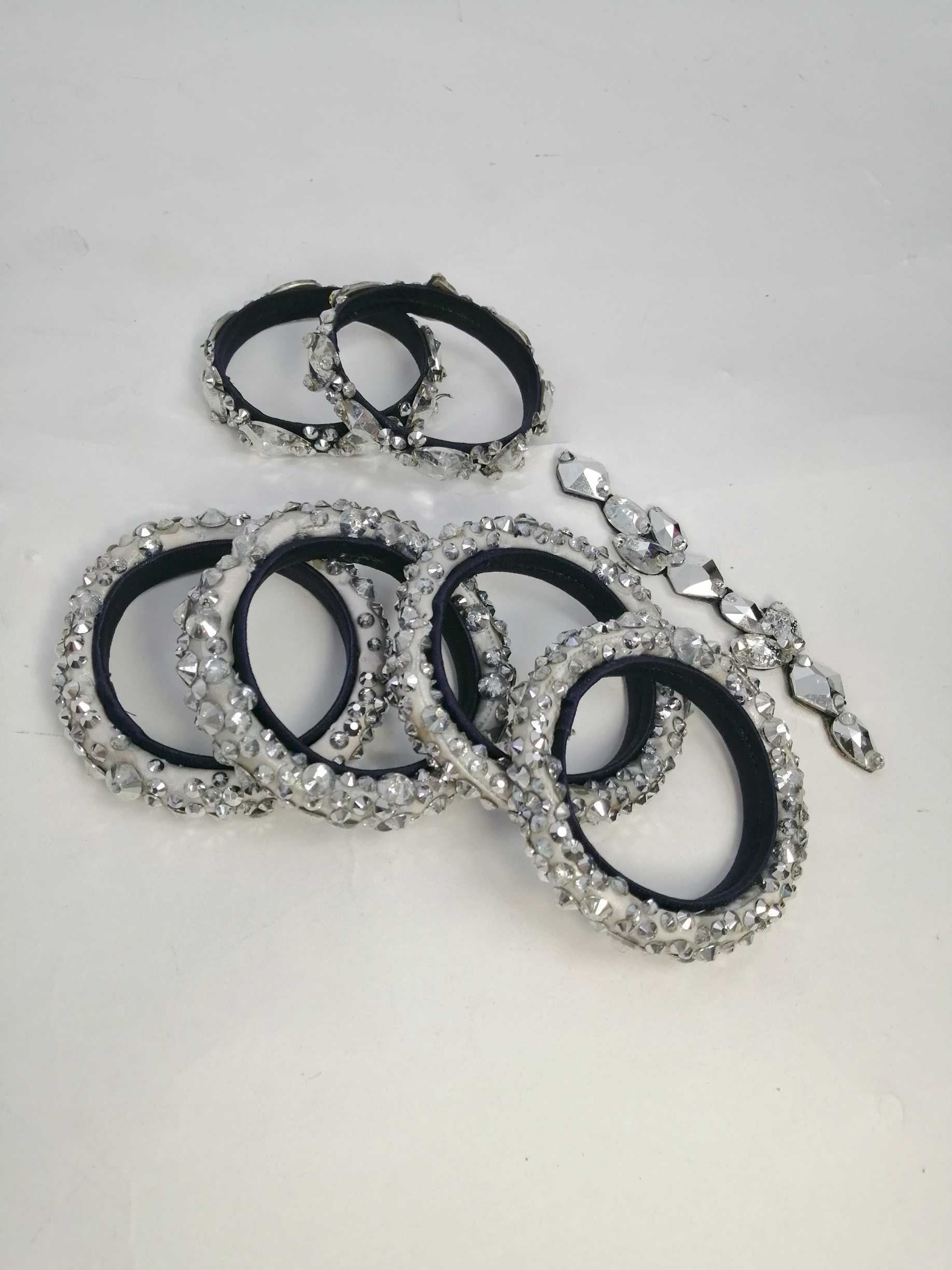 両サイドに開きがありますが、ネットを貼る、フリンジを追加するなどのリフォームをして対応することも可能です。お直しをご希望の場合には日本国内で安価で丁寧にお直しできる方をご案内できます。大きな石を贅沢に使った立体的なバングルが4本、わっかの形をしたピアス、および髪飾りが付属しています。