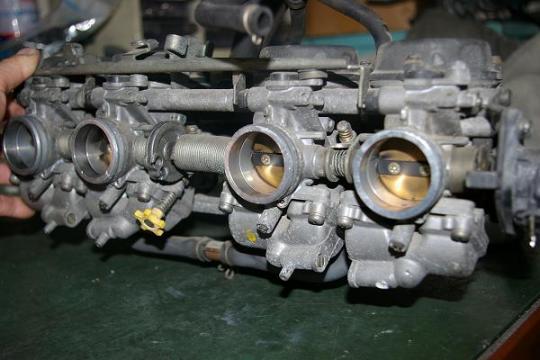 コニチワ~、もじゃです。 今日は雨・・・ こんな日は通勤とはいえバイクにあまり乗りたくないものです・・・ そんな引きこもり気分な今日・・・ 修理でお預かりしているバイクの作業で・・・ より引きこもりたくなるモノに出くわしました・・・ そのバイクは1年半ほど引きこもっていて動いていなかった車両なのです。 エンジンがかからないということでお預かりしたのです。 で、とにかく「キャブレターの掃除」は必要だということで・・・ 外してみましたが・・・その最中から・・・ キャブレターから怪しげな臭い・・・ 負けじと分解・・・すると・・・ あり あらやっぱりねぇ~ 皆さん分かりますか そうそのと~り 一番右側が・・・緑になっていますねぇ コレ、臭いの正体デス 1年・・・いえ保管状況によっては半年くらいでも・・・ なってしまいます コレ何か そもそもバイクのエンジンが動くのに必要なガソリンはキャブレターという装置で 空気と適切な割合で混合されてエンジンに入って行き・・・ それが燃焼することでエンジンが動きます (かなり行程は省いてしまいました・・・詳しくはスタッフに聞きに来てくださいね) それゆえにキャブレターには一定のガソリンを溜めておく器があるのです(汚い写真2枚目) しかし、そこにガソリンが溜まったまま長期間放置となると・・・ ガソリンの成分が一部揮発し、添加剤や残った成分が変質して「緑」になり・・・ それがガソリンの通り道の小さな穴を詰まらせてしまいます。 こうなってしまうと・・・エンジンは動きません。 だってガソリンの穴詰まってガソリンがエンジンに来ないから・・・ ということで、分解清掃となってしまうのです こうならない為にも、普段からバイクに乗っていただくのが一番なんですが・・・ なかなか忙しかったりで乗る時間が作れなかったりというのもあります。 そんなときはとりあえずエンジンを始動してアイドリングでしばし置く。 というのもアリですが騒音でご近所さんに迷惑が・・・という時は・・・ ネイキッドタイプのバイクなどでキャブレターが見える車両の場合は・・・ キャブレターからガソリンを抜いておく。というのもアリです その場合はガソリンをどこから抜くのか・・・工具は・・・ という問題もありますが、そんな時こそ・・・ 僕ら整備士に聞いてください しばらく乗れないかもと前もって予定が分かるならなおさら対策をしておくだけで 次の乗り出しのときにわざわざ修理に出してからという手間が減る可能性が大です チョットの一手間でバイクが長持ちしたり、乗りやすくなったり・・・ キャブレターだけではなく、バイクに使われているパーツはそんなモノがたくさんあります そういうコトのお話も色々させてもらえますので気軽にお店でスタッフに声を掛けてみてください ではでは・・・お待ちしています 今日はなかなか強烈な臭いにぶち当たって若干体(手)に臭いが移った気が・・・ 嫁様に「あんた、臭い」といわれてしまいそうな予感・・・ ではでは・・・