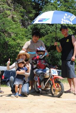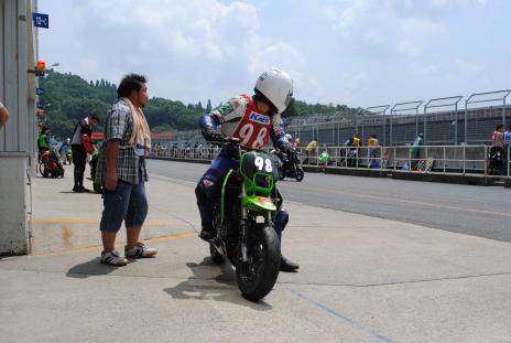 今回もカメラマンさんのおかげで沢山写真が出来ました。その一部をコチラで。 キッズクラスのスタート前。レース慣れしてきたのかずいぶんリラックス。 ライディングフォームもカッコ良くなってきました。 2人共に大健闘! ゼッケン29は賞典外(排気量が大きい為)ですがクラス1位でフィニッシュ! 頑張って練習した甲斐があったネ! 今回は2hオープンクラスにエントリー。 暑い中汗だくで頑張っていただきました。今回は結構ハード目のコースレイアウトだったらしく、 皆さん悪戦苦闘! 本当にお疲れ様でした。 今回は女性2人がライディングスクールに参加。 プロの先生にしっかり走り方を教えて頂きました。 楽しかった? これら以外にもたくさん写真を撮っていただいたので、ご希望の方は仰って下さい。 当日ご参加いただいた皆さんありがとうございました&お疲れ様でした!
