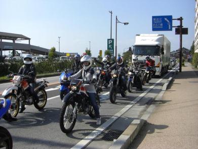 そもそもは今年1月、あるお客さんの「ツーリング連れてけ~!」から始まったこの企画。途中紆余曲折を経て、念願かなって5/15(日)に無事決行!当日はお天気にも恵まれ絶好のバイク日和。前回の事もあったのでほっと一安心。 朝B-LINE前に集合。あっ、因みに言いだしっぺの方は来てません。いつもの事ですけど。 今回は行きも帰りもメンバーを小口に分けて休憩ポイントで集合する形をとりました。上手くグループ分けすればそれぞれ快適に走れるのでこの方法オススメですよ。 渋滞も無く休憩を入れつつ順調に目的地に到着。 卵かけごはん専門店の「但熊」さんです。なので熊さんがお出迎え。 目的の「TKG」。うわさ通りの盛況でこの日も結構待ちました。で、お味の方はといいますと・・・、美味しいらしいです。(だって食べれないんですもん!)皆さんは召し上がってましたが、結構おなか一杯になるそうですよ。 で、食後にちょっと移動。高速を降りてからの道に気になる看板があったのでみんなで行きましょうということになりやってきたのがコチラ。さて、ココは何処でしょう? ご存知の方はともかく行った事無くて当てたらスゴイ! 今回も「自分ルール」に従い、コレは食べました。バイクに乗り始めた頃から「ツーリング→ソフトクリーム」を続けているので最近は意地になってきています。 今回ご参加頂いた皆様、ありがとうございました&お疲れ様でした。今回は予想外のいろんな珍しいモノが見れたのでとても楽しかったです!近場でもこういったディープなスポットは結構あるんじゃないかな?と思いました。そういうのを探してみるってのもアリですね!(そういう所にはだいたい「小枝探偵」のサインがあったりしますが・・・)次回・・・はまだ未定なんですが、ご要望やリクエストがあれば言って下さい。どっか行くとか、何か食べたいとか・・・、ソレに乗っかっちゃうんで。
