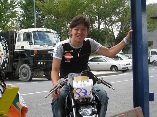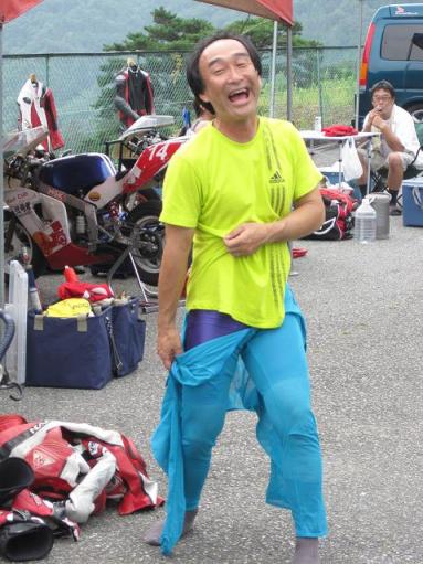 気付けば9月・・・ 少しずつ涼しくなってきた今日この頃・・・ 大事な夏のイベントをブログに上げていないことに気付き冷汗をかく・・・ ということで・・・遅ればせながら・・・ 8月15日に開催された「猪名川4時間耐久レース」のご報告をば・・・ 今よりはるかに暑い日曜日・・・ 天気予報では晴れマークが出ていたものの猪名川サーキットに向かう途中でパラパラと・・・ おかげさまで厚くて湿気の多い日曜日にレース開催となりました 暑いと出てくるこんなヒト・・・ 怪しいヒトですが今回のライダーさんです・・・ テントを間借りして準備中・・・ 今回は39号車(KSR110)には 常連の少年 ニョナカ君 HRS指導員(脱ぐヒト) フジワラじゃないよ、フジハラさん で、店員 もじゃ 40号車(KSR110) ロケットスタート ニーニョ君 スムーズロケット 先生 スピードロケット サンダーさん の2台体制で参戦 まずはフリー走行(練習走行) 39号車フジハラさんは久々のミニバイクと、初めてのコースなのでまず体慣らしがてら走ってもらう・・・ 「何かあれば戻ってきてくださいね」と伝えピットアウト はじめの何周かはスロー走行で様子見・・・ さてそろそろペースアップかなと思っていたが・・・ 明らかに遅い・・・ というよりどう見ても走りにくそうにしているし、コーナー立ち上がりも加速せず・・・ ストレートも走らない・・・ スグにピットインのサインを出す 帰ってきてコメント聞くと「スロットル開けても進まない」 とりあえずもじゃ店員が確認の為コースインするが・・・ 「なんじゃ・・・全く進まへん・・・」 1周まわらずにピットイン で、スグにバイクチェック 乗った感じガソリンが濃すぎる感じだったのでキャブレターチェック セッティング変更してエンジン始動・・・エンジン空ぶかし・・・ ちゃんとエンジン吹けず・・・ 更に変更・・・ エンジン吹けず・・・ 更に変更・・・ を繰り返すも全くセットでず 今回のレースの為に急遽大口径キャブレターを準備して取り付けたのだが・・・ 事前のテストができないままの本番になってしまった為の事態・・・ そうこうしているうちにフリー走行も終わり、予選開始 40号車は順調に走行している 39号車はいまだ走行できず 一旦コースに出てもらうがやはりダメ・・・ 大会の役員の方も心配して見に来てくれた・・・ 予選終了・・・ 40号車 予選12番手(34台中) 39号車 ノータイム 予選未走行でも決勝は走行可能なのは確認していたので作業を続ける そして決勝スタート 40号車はキチンと走行を続けている・・・ ライダー交代も済ませ確実にラップを刻んでいく かたや39号車・・・ セット変更してはエンジン始動・・・走る・・・ダメ・・・ を繰り返す・・・ キャブレターだけでなくCDI(点火信号を出すコンピュータ)も変えたり・・・ そして・・・ ついに・・・ コレで走ってみてと送り出したニョナカ君が・・・ ちゃんと加速しながら走っている・・・ ピットインしてきたので確認すると・・・ 「いけます」との返事 スグに走行時間の予定を伝えて送り出す・・・ 決勝開始から1時間弱経過・・・ 事前準備の不足の結果を猛省 ニョナカ君は快調に走っている サインボードを出してくれているお手伝いのキチオさんも忙しくなってきた やっとやな~と思っていると ニョナカ君ピットイン 「こけました」 バイクを見て特に問題なさそうなので 「レッツゴー」 その後は両チーム快調に走行 サイン出しも順調 サンダーJrもゴキゲン サングラスもバッチリ 彼は夜勤後尼崎から猪名川の山奥まで自転車で来たおバカ君です 39号車40号車ともに順調にライダー交代、ガソリン補給とこなし・・・ あれよあれよと気付けば4時間終了・・・ もじゃ的には体力精神ともに非常に疲れたレースでした・・・ トラブルの為に大きく予定と時間を狂わせてしまいました・・・ それでもお手伝いに来ていただいた方のおかげでその時もその後も乗り切ることができました ホントウにありがとうございました ポチさん、いつもいつもサイン出しありがとうございます 急遽のサイン出しありがとうございました キチオさん ユリねぇさん チュネヤマ君 40号車を見て頂き、39号車のお手伝いも頂きありがとうございました カッシーさん ライダーの皆さんもお疲れ様でした 次回は事前準備も確実にして、バッチリ気持ちよいレースが出来るようにしますので・・・ またよろしくお願いします 決勝結果 39号車 31位 40号車 21位