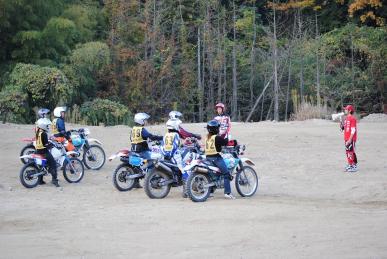 レースと併せて「オフロードライディングスクール」もあり、そちらにも当店のお客様が参加されました。今回は時間がたっぷりあったのでその様子を見学できました。 講師はトライアルのデモもされていたプロのライダーさん達。親切・丁寧・分かり易く楽しい講習。さすがプロ、教え方も一流です。 本格的なOFF装備は不要、普段バイクにのる格好でOK(モチロン安全な服装で)、マイバイク持ち込みの方もおられますが、レンタルバイクも用意されているのでそちらを借りて参加している方もたくさんいました。今回ウチからの参加者はいませんでしたが、講習の合間に初心者対象の40分エンデューロレースもありスクール&レースで1日バイクで楽しまれた方も。講習の内容も決して難しいものではなく、ホントのOFF初心者の方が先ずは未舗装路に慣れる所から始めてくれるので安心です。クラス分けもしているので上達の度合に応じて本格的な事も教えてくれます。 たまにはご愛嬌も。ちょこっと経験者から見てても「面白そう」「受けてみたい」と思う内容でとても楽しそうでした。参加された方に感想を聞いてみるとやっぱり「楽しかった!」との事。次回、来年4月も参加する予定なのでそのときはスクールの参加者も募ってみんなで1日遊ぼうかなと計画中。「行きたい!」と思った方はB-LINEのスタッフに一声。今回凄く刺激を受けたので、久しぶりにバイクに乗りたくなってしまいました。オフロードは寒い時期でも楽しめるので、来年に向けてこの冬はマメにコソ練に行こっと!