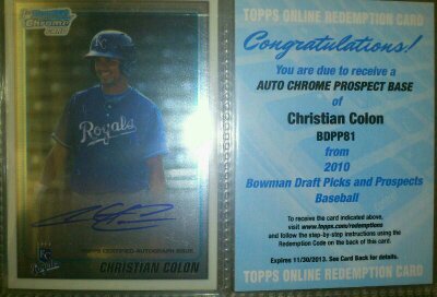 本日は、自分が所持しているMLBカードの紹介をします。今回紹介するカードはすべて提供可能ですのでBBMカードとの交換を希望します。ご希望のカードがございましたらご連絡ください。 10Topps 1st Bowman Chrome CHRISTIAN COLON オート(レデプションカード付) 07 JAPANESE COLLEGIATE ALL-STARS 村松、小窪、田中 ジャージ02 Topps 新庄バット 10 Topps SEAN GILMARTIN&BRETT MOONEYHAM オート(/99)09 PANINI DONNIE JOSEPH パッチオート(/125)あとはシリアル。BBMカードとの交換お願いします。