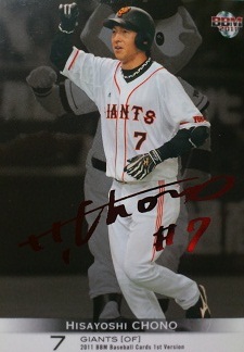 題名でもじりましたが、到着カードは長野選手です。現在セ・リーグ首位打者独走です。さっそく紹介します。11BBM:長野 久義 赤箔サイン(/25)*提供可交換可能ですができれば、岸赤箔サインとの交換を希望します。よろしくお願いします。希望外でもご検討いたします。