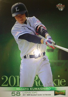 最近皆様のおかげで交換する機会が増え嬉しいことに到着カードの紹介がたまっていってます。岸選手を新マイコレ対象にしてからは、たくさんの方に交換していただいております。全体を見ると全然ですがこつこつ集まってきました。ありがとうございます。今回紹介するのは、1番収集に力を入れている熊代選手の到着カードです。今年の1stは、BOXにほぼシリアル1ということでみなさんあまりあけられていないので開封結果などを見させていただいても熊代選手のRCパラは見ることができませんでしたので、今回は人生初のオークションで落札しました。 11 1st:熊代 聖人 RCパラ(/100) *マイコレ無事入手できてよかったです。ですが、西武が発売になり直筆など難関が増えました。11西武熊代選手のカード下はレギュラーから上は直筆まですべて希望します。お持ちの方は交換よろしくお願いします。直筆は、レート優遇いたしますのでよろしくお願いします。