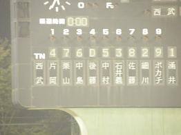 大宮公園へ。楽しみにしていたこの試合。先発は涌井vsグリン。ダルが良かった~ぁぁぁっていうのが本音でしたが仕方ない。グリンとは一昨日くらいから大体分かっていましたね。友達にはグリンは炎上するから見てろwって言ってしまったんですけど。その通りになってしまった・・・ボカチカ以外全員に打たれてましたね。特になかじはタイミングばっちりでした。目立たないけど石井義も上手い流し打ちでしたね。涌井は球数多いのが気になったけど力抜いてテンポ良く投げました。10点もあればよゆうだな。それにしても大差が付いてしまった。残念。西武が勝ってよかったです。大宮不敗神話か???スコアー今日の赤田途中からセンターに入る今日の金子誠出場無し