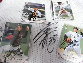 が今日届きました。30周年の盛田直筆です30周年のサインの選手が発表されてから盛田だけは絶対手に入れようと思っていました。交換掲示板にも依頼を出しましたがオファーが無かったので、12/7のカードショーでショップで買う覚悟だったのですが、用事が出来てカードショー行けず。駄目もとで所持している方に交換依頼を出したところ希望外のカードとの交換にもかかわらず提供してくださりました。九州虎連合さんありがとうございました横浜移転30thのページを作りました。まだまだ未所持はたくさんあり、強く希望しているので交換できる方宜しくお願いします。(提供カード雑魚雑魚ですが^^;