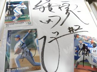 続いてベイからも…川村が引退…今年は球威、変化球のキレ、制球…全てが衰え1軍では厳しくなってしまっていました。もう不調とかいうレベルじゃないので引退という決断は正しいと思います。寂しいですが仕方ないです。98年のときはローテの中心でした。マウンドで跳ねるようなピッチング忘れません。お疲れ様です。来期からはシーレのコーチになるんですね。もうほんとにやばい状況なのでしっかり育ててもらわないと困ります。貰ったサイン。左は横浜移転30thのカード。そう。貰ったのはつい数日前です。貰った時、川村に頑張ってくださいと言ったら、頑張るって言っていましたが、もう心の中では決めていたのかと思うと…なんか虚しいですね。