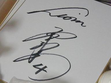今、すぽるとの清原の全メッセージ見ました。鳥肌立ちまくりました。仰木さん・・・ってところがやばかったですね。僕は引退試合に弱いですね。去年の佐々岡の時も泣いちゃったし。今回の清原は泣かなかったけど。悔しいですね。清原一回も生で観た事無いんですよ。。。一度でもいいから観たかったです。そういえば中学のチームメートが大の清原ファンでしたね。その時は清原なんて怪我ばっかして、ピアスつけてる、金泥棒じゃんかーって言ってたけど、引退試合は何故か感動してしまいます。お疲れ様です。懸賞で当てたサイン色紙。日付がそのまま日付って書かれていて面白い。
