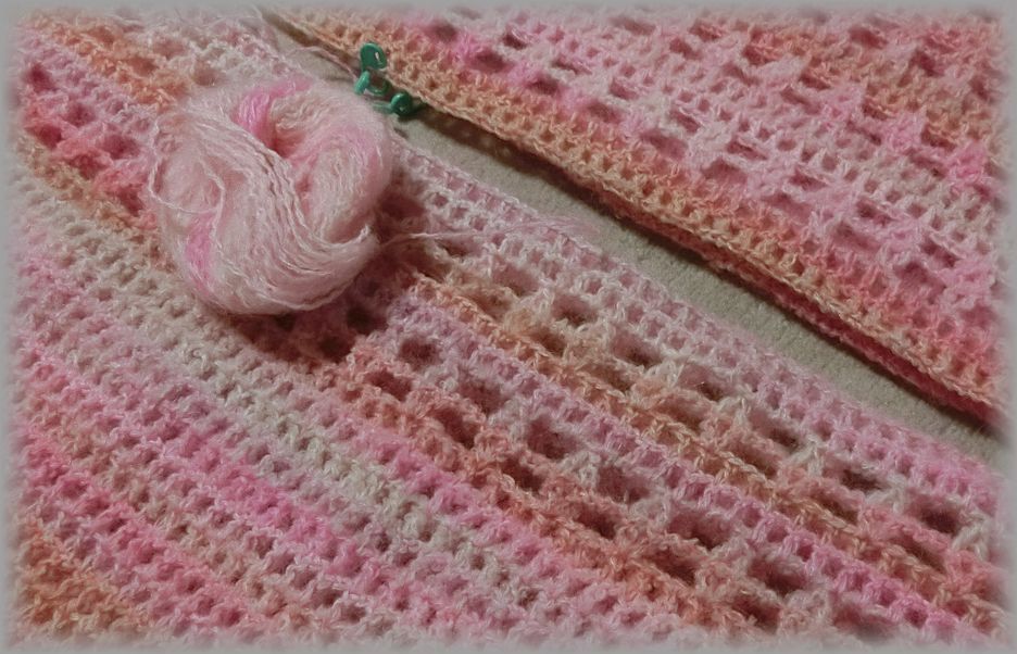 ピンクと白とオレンジのストレートヤーンとスラブの2本撚り。