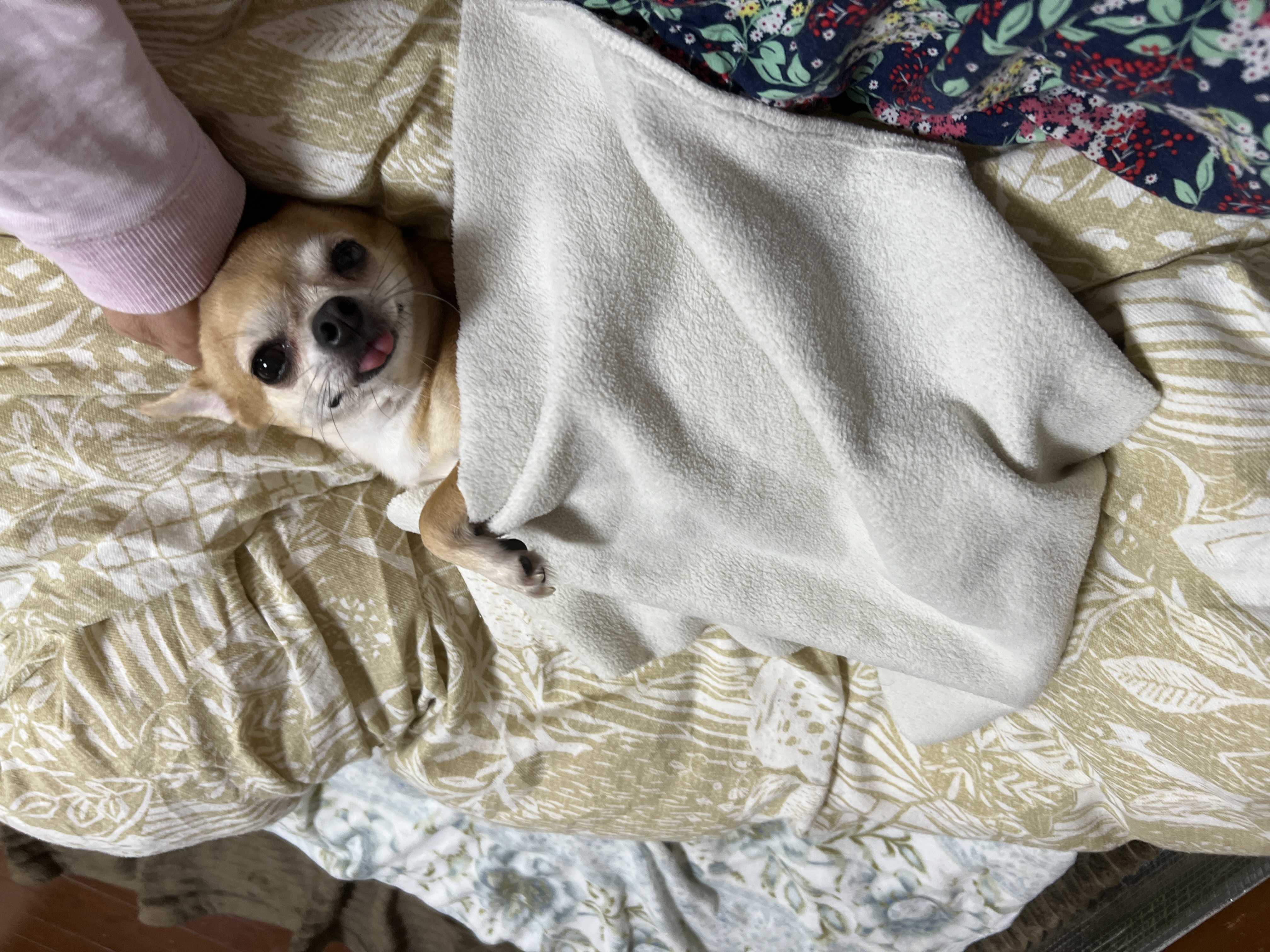 先月、ガン手術成功!😮💨詳しくは次回の話で。ところでさっきパパさんと、ちょびっと喧嘩。「もうこんな家帰りたくない!」と言うパパさんの話をコーチングで深掘りすると、バスの運転手のパパさんは、今朝は3時半起きで眠いけどダラダラ起きてくる私や息子が腹立つと。(関係ないやん!ていうか、うらやましいだけ?)私も自分にコーチング。落ち着いて自分のやりたい方向を見つけてから、パパさんに聞いてみた。どうやら眠いから、息子の帰宅の前に、今すぐ寝たいみたい。「眠いなら、今から寝るねと言えばいいやん」と、さっと2階に上がったらパパも落ち着いてたみたいだけど…。ごめんねとかありがとうを言わないパパさん。何とか言わしてみたいなぁ…。てことが、このモヤモヤを書いてたら出てきた望み。いつか叶うといいなぁ。うるさくしないように、チワワのアンナちゃんを2階にあげようとしたら、「別に1階でもいいよ」だって。 うるさくて寝れないからと、いつもは2階に上げてって言うのになぁ?相変わらず読めないパパさんだ…。布団で寝転がるアンナちゃんに、毛布をかぶせたら可愛い〜下のバナーをポチっとが、嬉しい🐕にほんブログ村