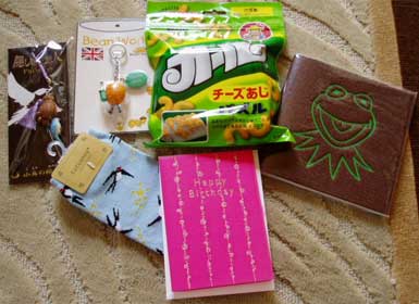 昨日は まめ嫁の誕生日♪もう すっかり 誕生日を喜べる歳では無くなっているのですが。。やっぱり 誕生日は 嬉しい。。女喜...φ(′┏▽┓`●)ノ【C】ペタッ朝 お届けモノが届いた。。(?。?)ひめ様からでした。ヽ(ω・,,ヽ)ウレ!! (ノ,,・ω)ノシイ!!.。゚+.(,,・ω・,,)ノ。+.゚ デス!!中を開けると。。次々と出てくる。。出てくる。。ひめ様 いつも ありがとうございます。m(_ _"m)ペコリこの中の 【Bean World】が まめ嫁的にツボ!!ツボニハマッタ・・・ \壺/。+゚(ノ∀`)゚+。\壺/アハハッ!!!豆が酔っ払いです。【Bean World】を調べたら。。一人ひとり名前があるそうで。。この子は【Drunken Bean】・・・σ(〃'▽'〃)にピッタリ!!(爆)カエルのノート セサミストリートのカエルだと思っていたら。。確かにセサミストリートにも出てたけど。。別のお話があるのですね。^m^カールのパズルも面白そう♪誕生日祝いメール♪ 送ってくれた方々。。ありがとうございました。m(_ _"m)ペコリ誕生日覚えてくれてて。。更にお祝いの言葉を貰えるなんて。。。・:*:・(*´ー`*人)。・:*:・ 幸せ~~~♪夜に ダンナ様が 両手に抱えて帰ってきました。。今までで 一番大きな 花束でした。。( *´艸`)いつもの様に まめ嫁の好きな 黄色とオレンジの花束♪