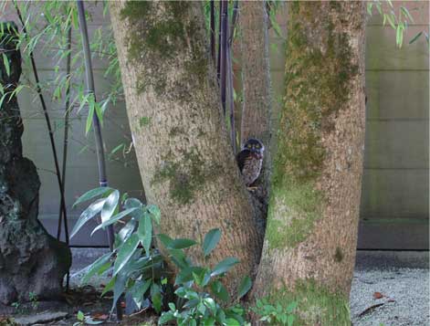 今月初めの旅行で とっても嬉しい出会いを。。。。まめ嫁が 野生で会ってみたいモノ。。。去年のマンボウに引き続き・・・また夢が叶いました♪ (*ノωノ)キャッ 今回宿泊していたのは、天橋立の近く。。。まめ嫁 天橋立上から見た事無かったのですよ。。何度も通ってるに。。。。皆 遠足。旅行などで一度は見た事あるそうで、いつも前を素通り。。(〃_ _)σ∥イヂイヂ今回は すぐ近くに宿泊していたので、上から天橋立を眺めてみようかと。。(¬w¬*)ウププ ケーブルカーに乗る前に 【元伊勢 籠神社】へ 行ってみる事に。。鳥居や神殿を改装?したばかりのようで、ヒノキのいい香りが境内いっぱいに香ってました。中を歩いていると。。視線を感じた まめ嫁。。( =_=) ジィー・・・・・>▽ )グサッまめ嫁を見ていたのは。。。(ノ ̄┏Д┓ ̄)ノ ウオオォォォォォォォー!! 慌てて カメラを構えて。。(-p■)q☆パシャッパシャ☆ 解りますか???フクロウの雛が居たのですよ!!もっとアップで撮りたくて。。望遠レンズに交換♪アップで観ると。。。(* ̄┏Д┓ ̄*) ポッ めちゃめちゃ カワイイ♪ダンナ様に 「俺もフクロウの写真を撮りたい!!」とカメラを奪われた まめ嫁。。雛がここに居るってことは。。。。親も近くから見てるはず!!木の上を キョロ(((゚ー゚*)(*゚ー゚)))キョロ・・・・やっぱり居ました♪ ・・・・寝てました。。( *´艸`)まめ嫁夫婦が 木の下で ブツブツ話してるのが気になったのか。。目を覚ましました。。目を開けて 見下ろされると・・・・ちょっと怖い。。―( ̄∇ ̄;)→グサッ!!!“家の子に悪さしないでよ!!”って 目で言われてるみたい。。。(笑)他にも居ないか 木を見てると。。兄弟?? もう1羽みつけました。。この子は とっても大きな木なのですが、上の方に居ました。野生のフクロウに出会う?観る?のが 夢だった まめ嫁。。とっても嬉しい出会いでした。わぁいヽ(∇⌒ヽ)(ノ⌒∇)ノわぁい♪それも 一気に3羽!!しかも 雛まで 会えるなんて。。ダンナ様。。望遠レンズの凄さに感動してました。(*≧m≦)まめ嫁が 望遠レンズ買ってから 野鳥を撮って「すごい!すごい!」と楽しんでる気持ちが良く解ったと。。(爆)夫婦でフクロウの写真 一瞬で大量に 撮影しました。。(● ̄▽ ̄●;)ゞぽりぽりフクロウの名前 調べました♪ 【アオバズク】でした。